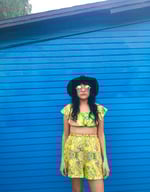 The 'Kaleidoscope Leaves' Set is handmade with love in California featuring a vibrant green lush botanical psychedelic print by Artist, Olivia D'Orazi.